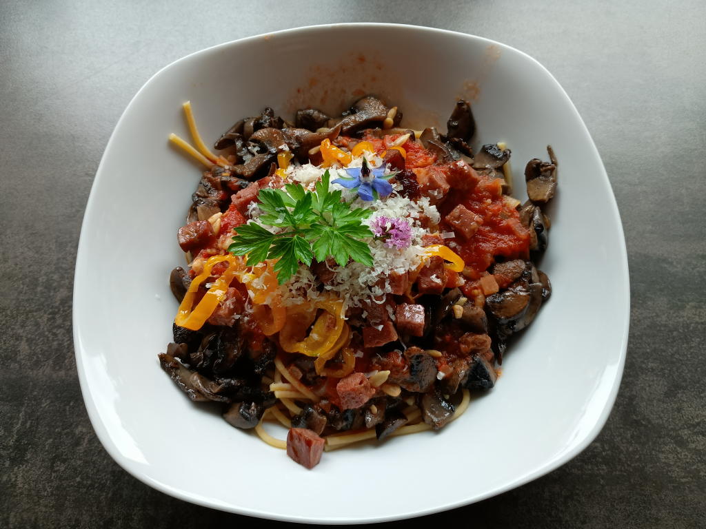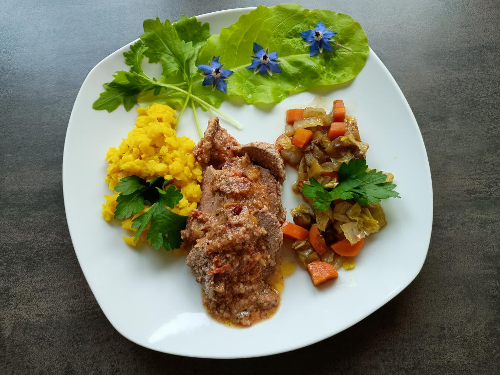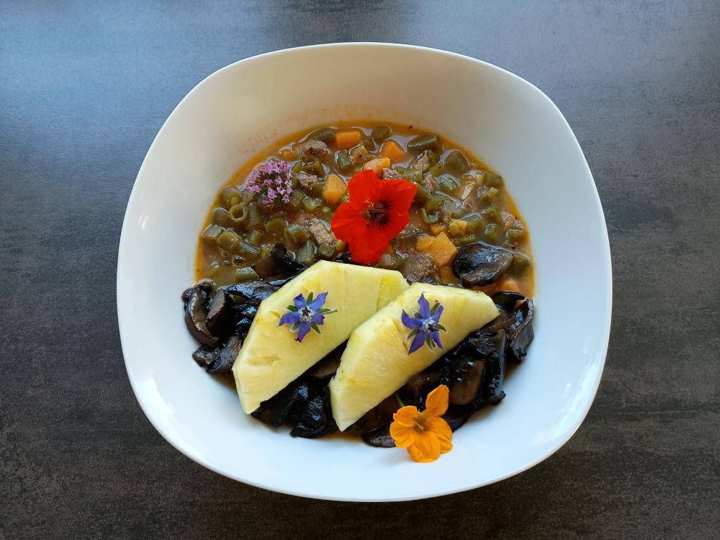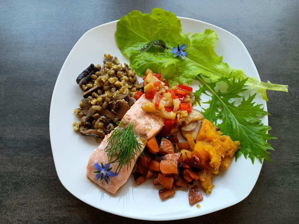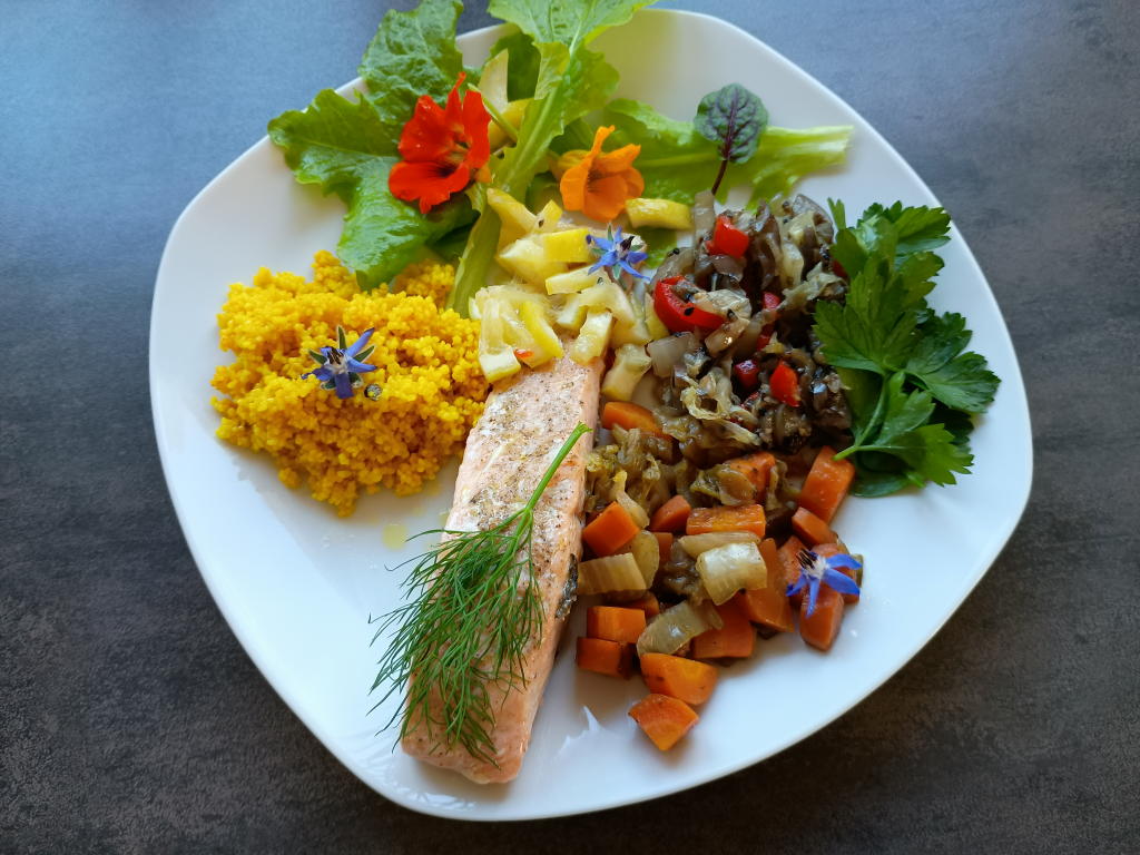 Mittagsspeisen im November 2025 Im November konnten noch viele Blüten aus dem Garten eingesetzt werden.